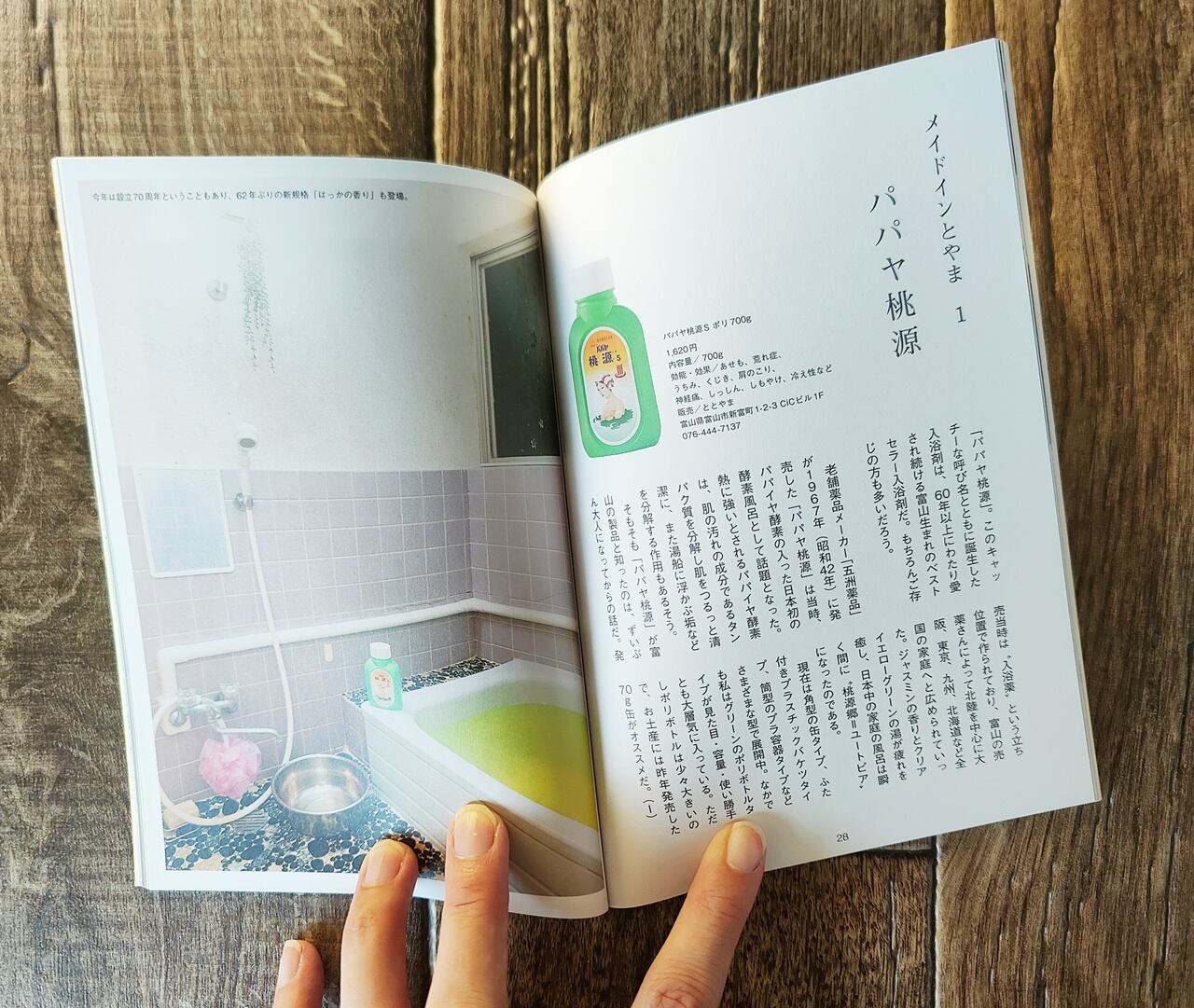 富山といえば忘れてならないのは「薬」。1955年に発売以来、長く愛されているロングセラー薬用入浴剤の「パパヤ桃源」も登場します。