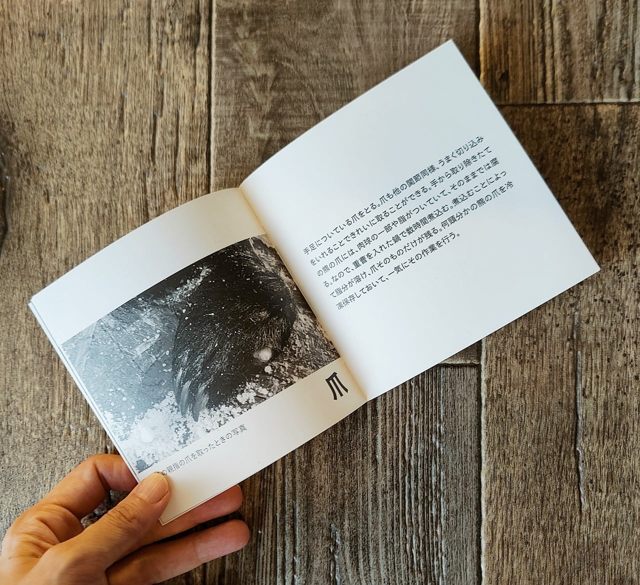 そして続編にあたる本書では、実際の熊の解体風景や革製品に加工するまでの工程などが、写真付きでレポートされています。