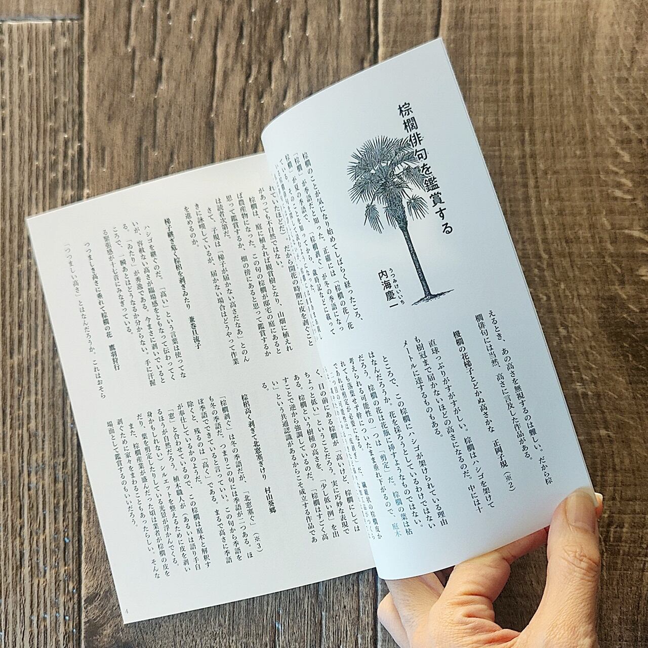 そして文担当の内海慶一さんによる「棕櫚俳句を鑑賞する」。シュロと俳句。なんという斬新な組み合わせ!「棕櫚の花」は夏の季語で、「棕櫚剝ぐ」だと冬の季語になるそう。シュロを剥ぐって何だろうと思ったんですが、シュロ産業が盛んだった頃には、業者がシュロの皮を剝ぐために民家を回っていたことなどから俳句に詠まれたようです。
