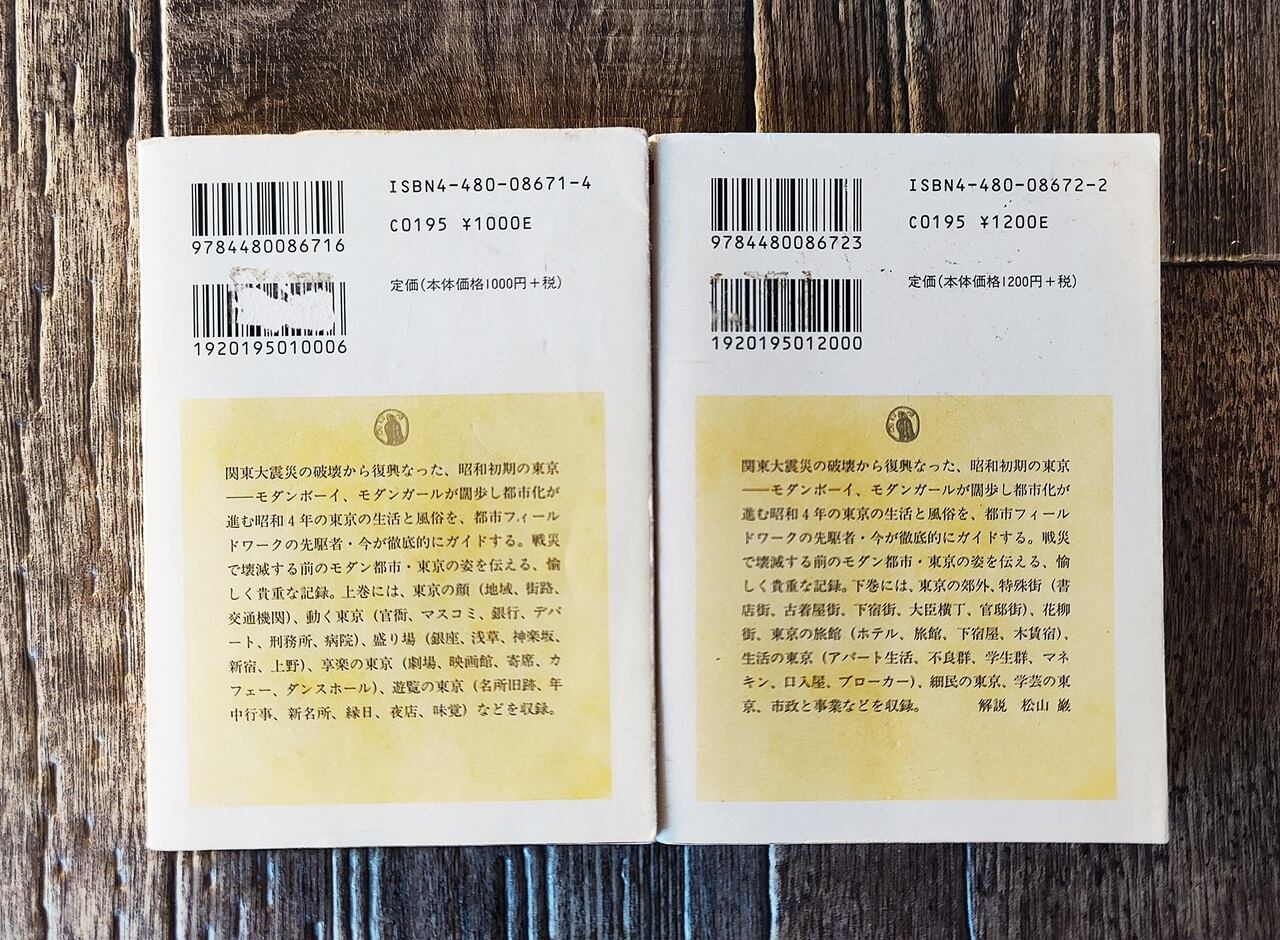 「考現学」の提唱者であり都市フィールドワークの先駆者である今和次郎が、関東大震災後の昭和初期の東京を生活・風俗・建築・街並など多角的な視点で記録したガイドブック。モダン都市としての東京が復興の過程でどのように変貌を遂げたか、盛り場・遊覧・生活・市政などのテーマを通して、読者に昭和4年頃の東京の息づかいを伝えます。