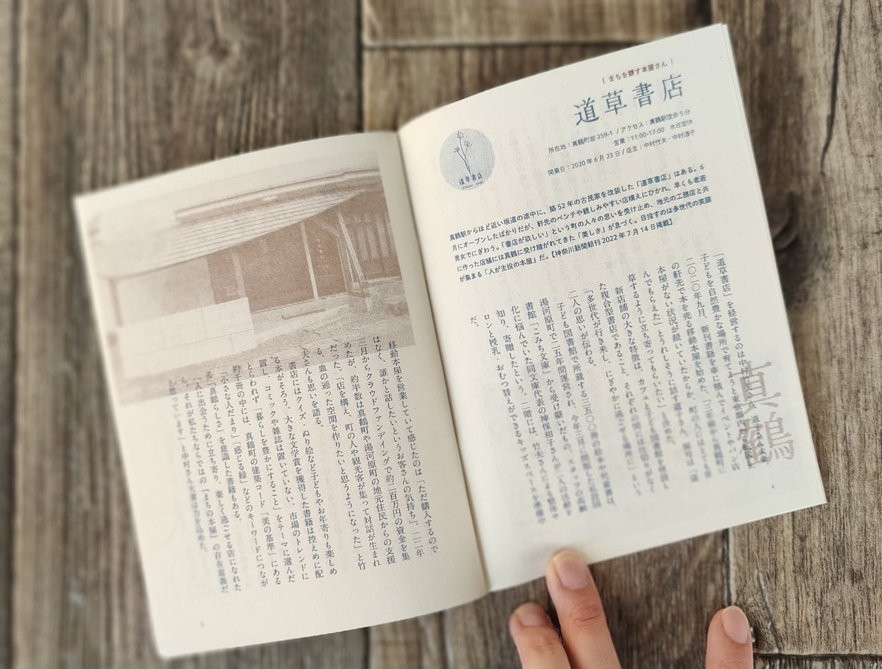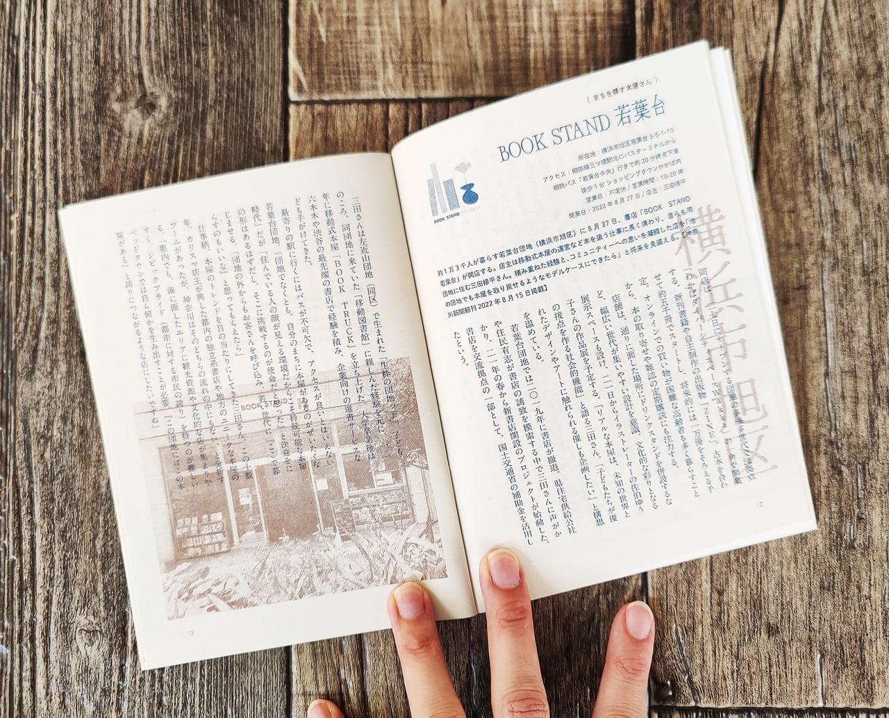 両面表紙のリバーシブル形式で、神奈川の本屋さんからの寄稿文「文集・本屋のあるまち」と、神奈川新聞の朝刊で2022年7月~12月まで連載されていた神奈川の独立系書店の取材記事「まちを耕す本屋さん 」で構成されています。