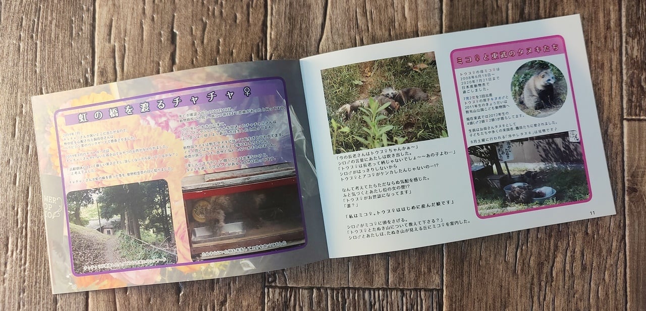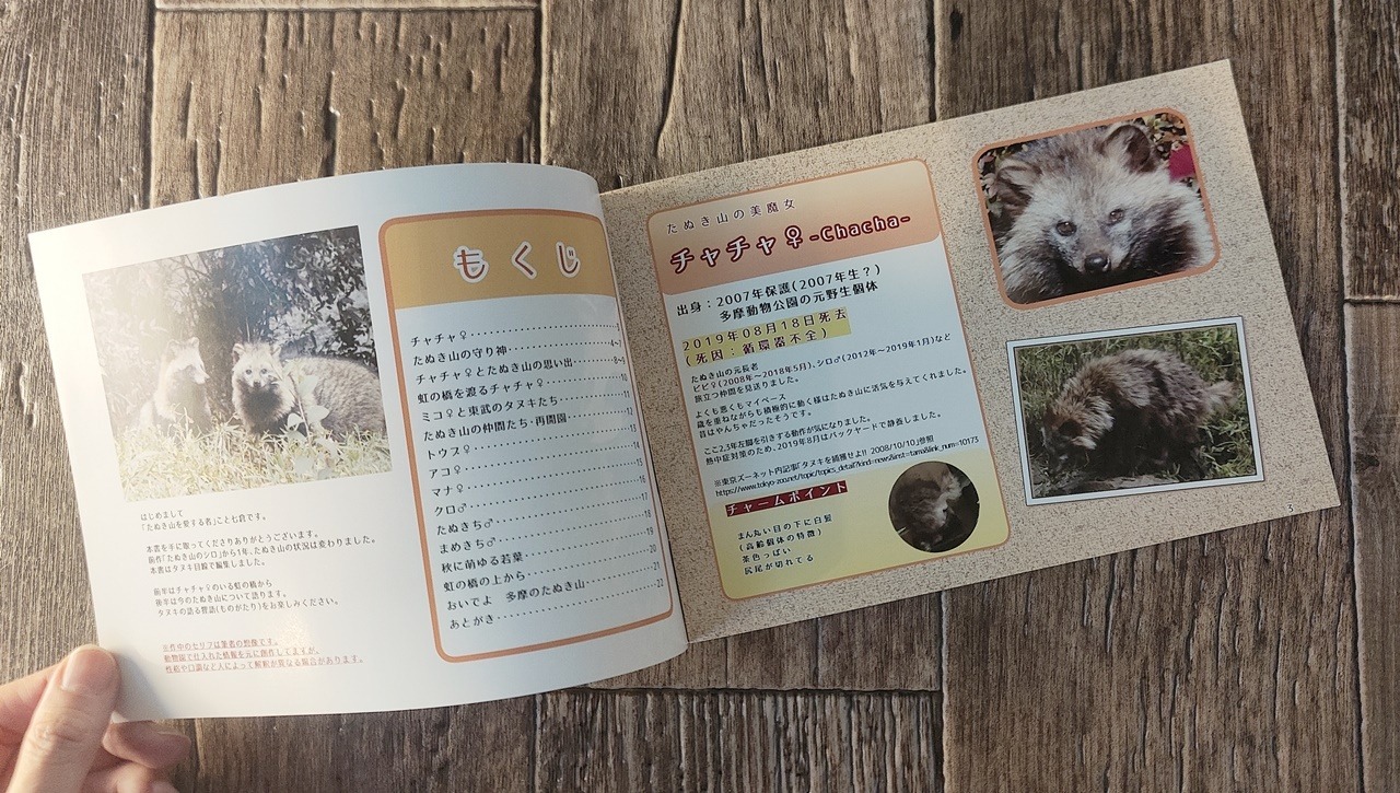 可愛らしいタヌキのいる日常写真と、個体ごとに出身地などの記録が綴られているZINEです。同園は2017年12月~2018年3月に「企画展タヌキ」という展示がSNSを沸かせたこともあり注目されてきました。