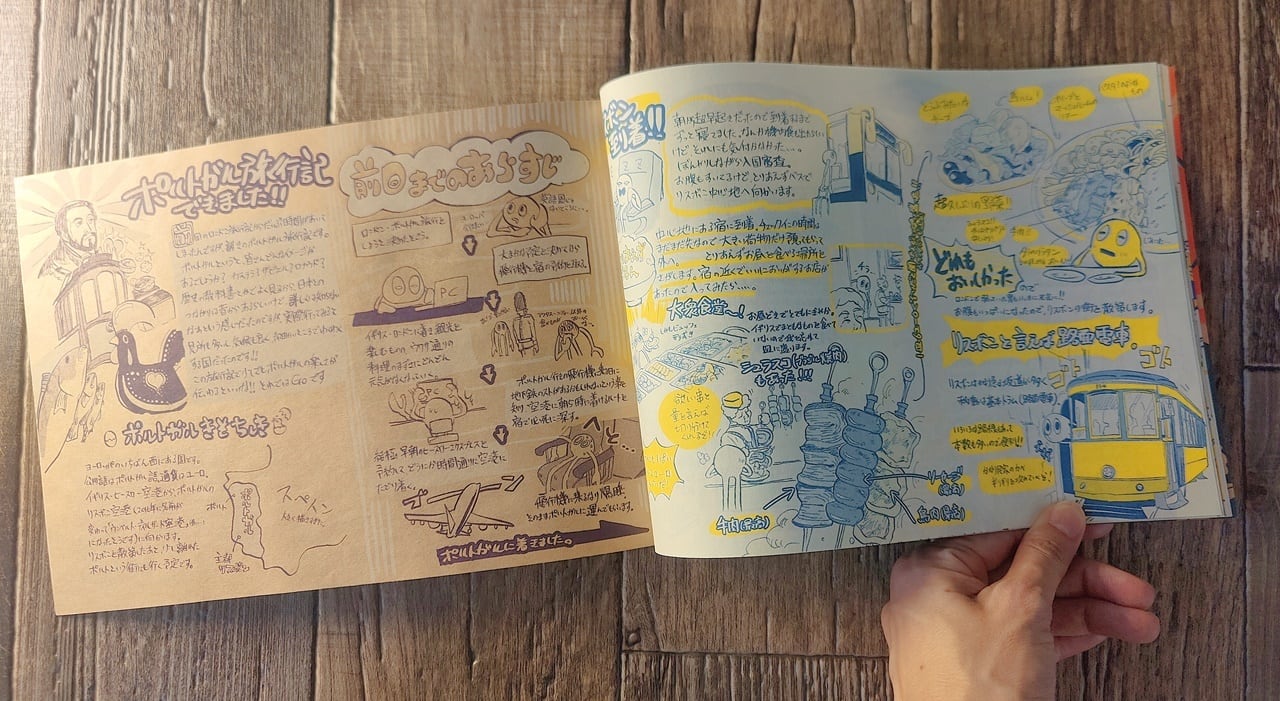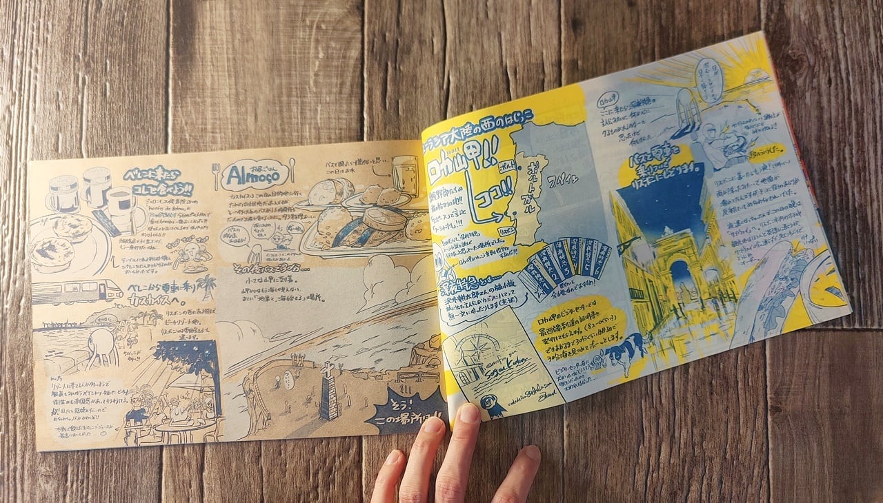 『Enter the London(ロンドン旅行記)』と『Guide by azulejo(ポルトガル旅行記)』の2冊に、ヨーロッパ2ヶ国を10日間でひとり旅した道程が、手書き旅行記とイラストでまとめられています。こちらはポルトガル篇です。