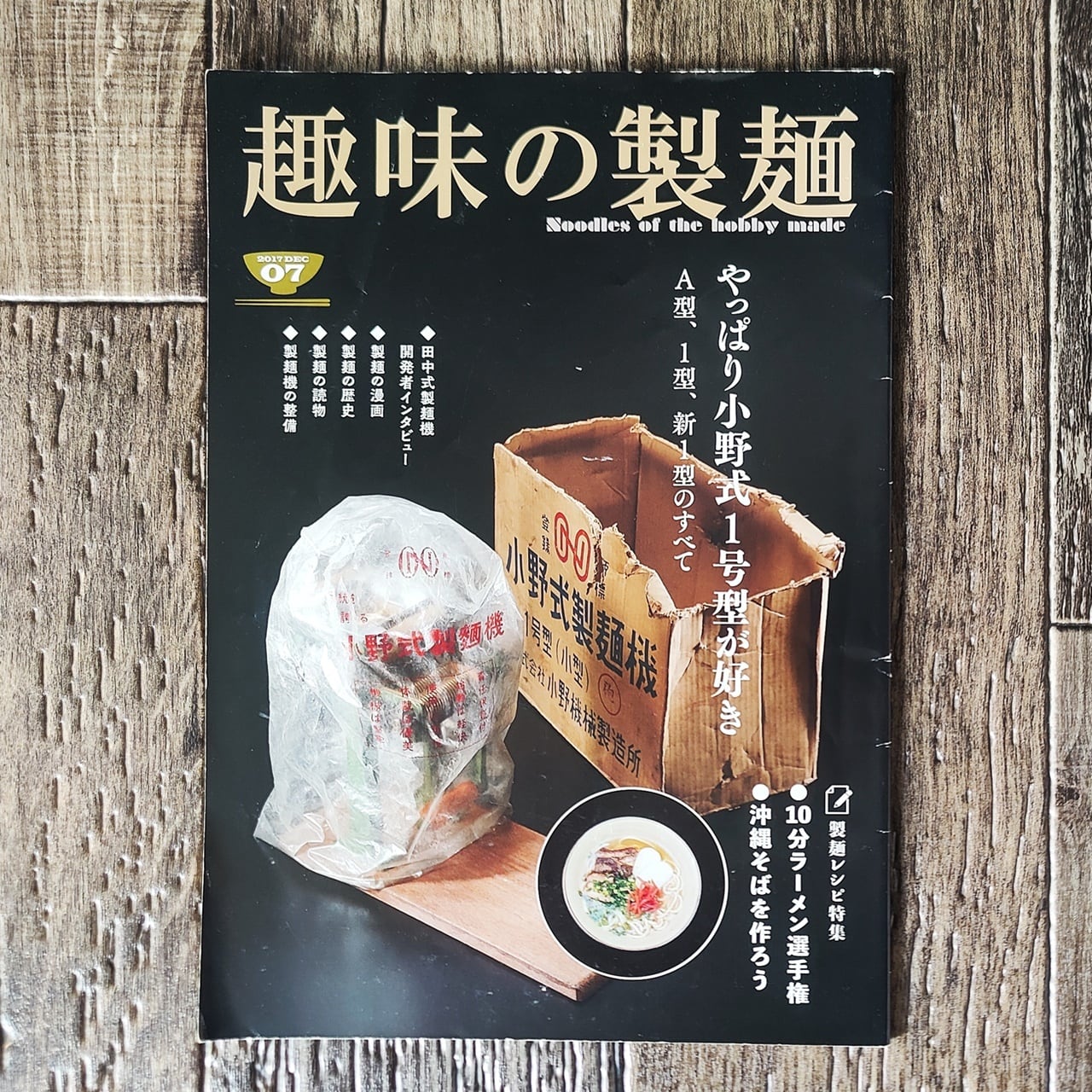特集は「やっぱり小野式1号型が好き」です。やっぱり小野式なんだそうです。製麺機巻頭ビジュアルにつづき、「10分ラーメン選手権」、「沖縄そばを自家製麺で作ってみよう!」、「家庭用製麺機で麺以外のパーティー料理をつくろう」、「製麺機でお菓子づくり」など、製麺づくしの1冊!