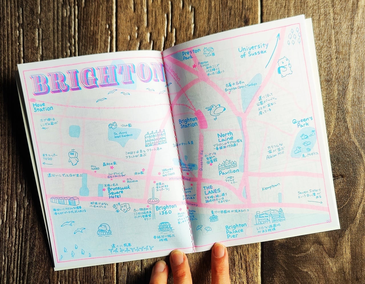 イラストブック『Brilliant Brighton Beach』でイングランド南部の海辺の街ブライトンを描いている羽田お皿さん。こちらはブライトン1年間滞在記のZINEです!