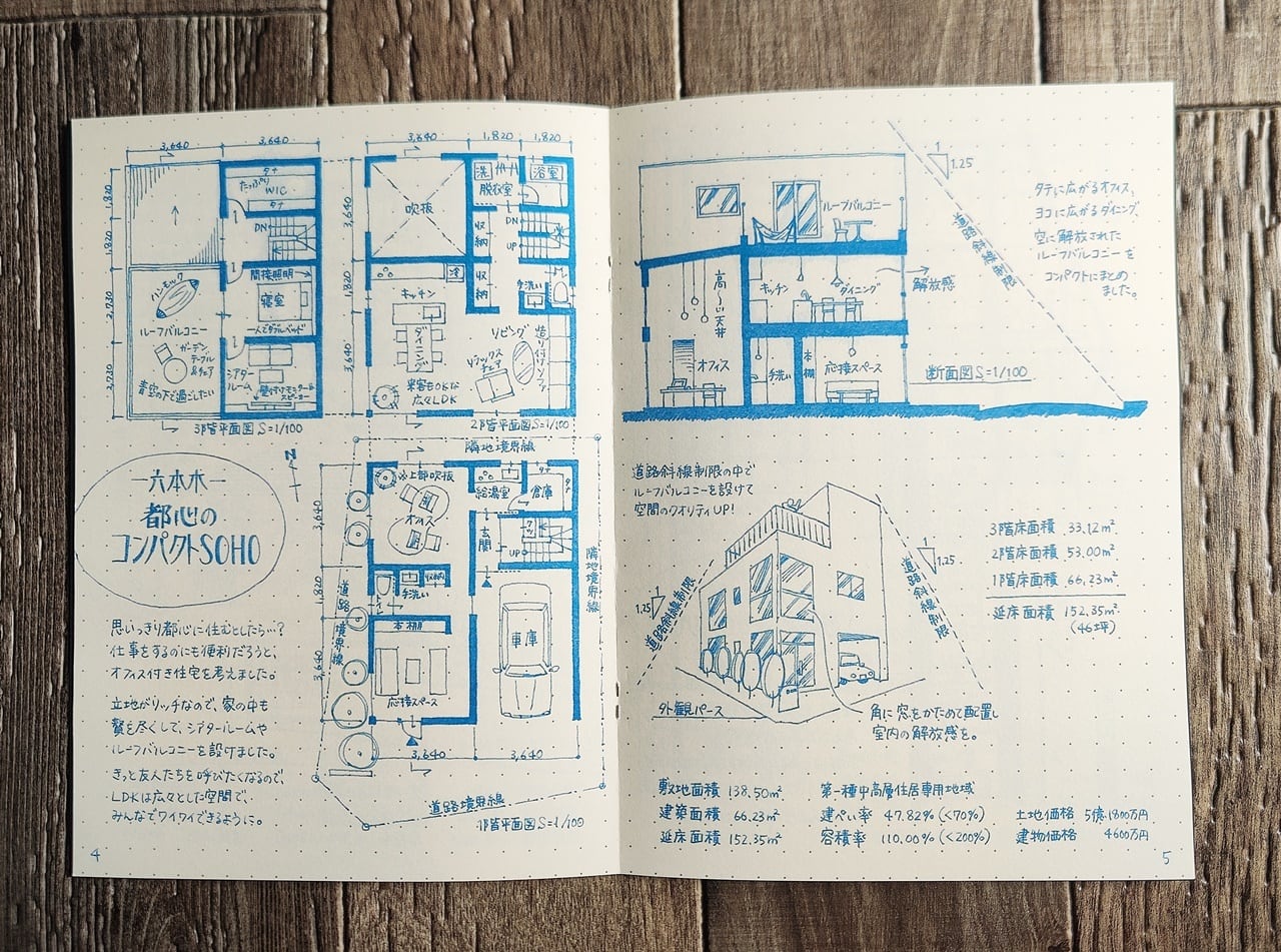 「まずは不動産サイトを物色し、住みたい土地を探しました。実在する土地に、妄想で家を建てるわけです。法規制もクリアできるように設計しています。」(「はじめに」より)